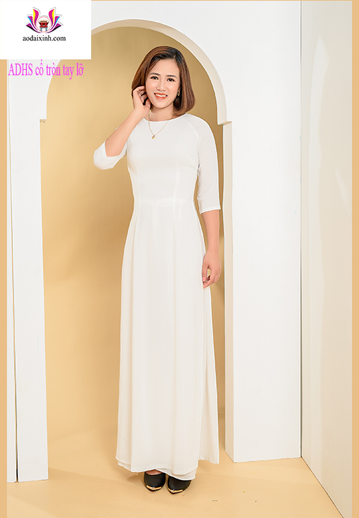 Sản phẩm áo dài học sinh trắng trơn, cổ tròn tay lỡ